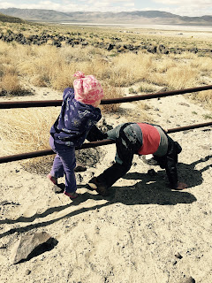 Owen and Ara had fun holding a cold blue belly lizard.